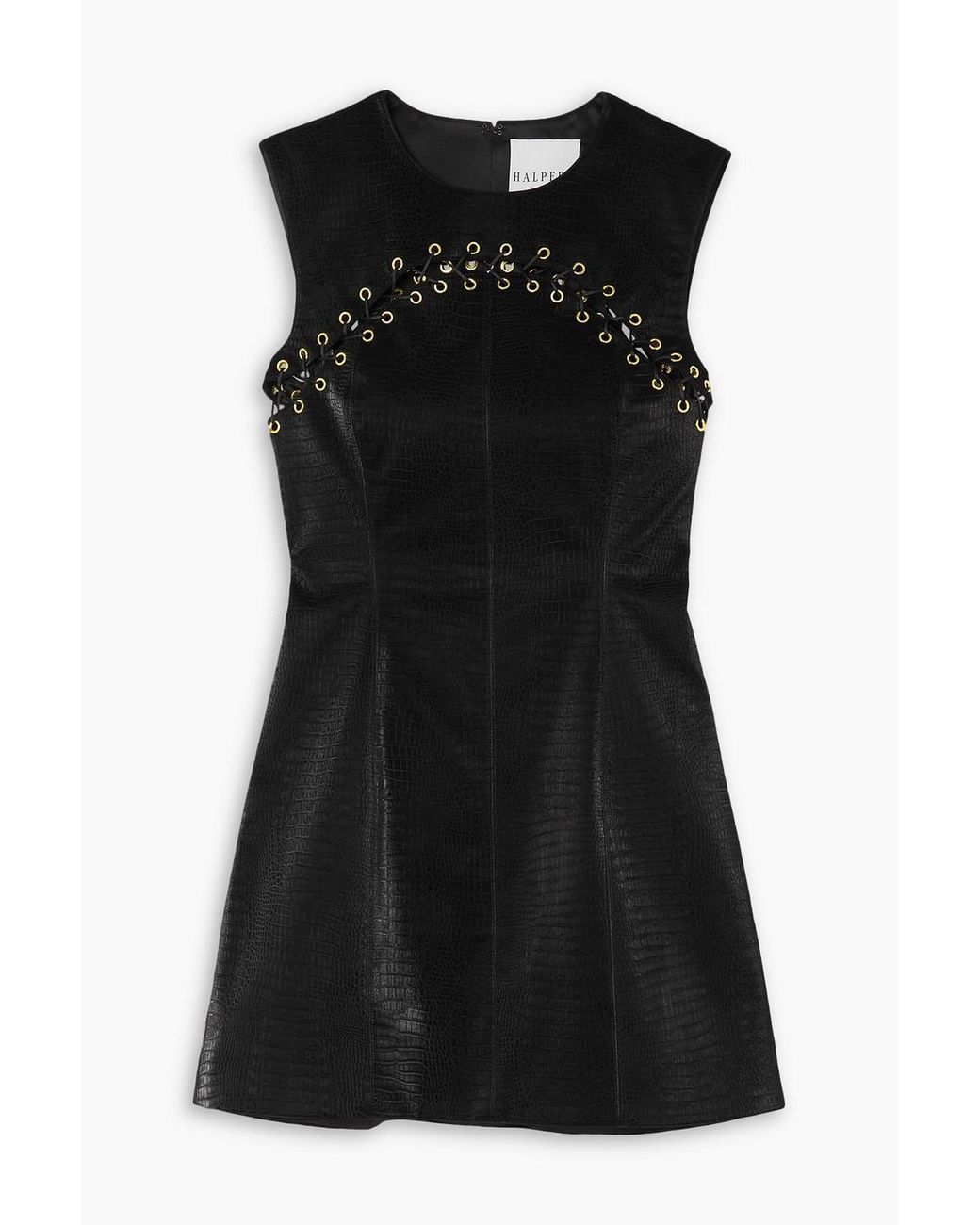 Dress croc-effect Synthetic Material lace-up Detailing zip Fastening Along Back hook-fastening Keyhole At Back fully Lined non-stretchy Fabric mid-weight Fabric hand Wash Or Dry Clean imported. 100% Polyurethane. Colour: black