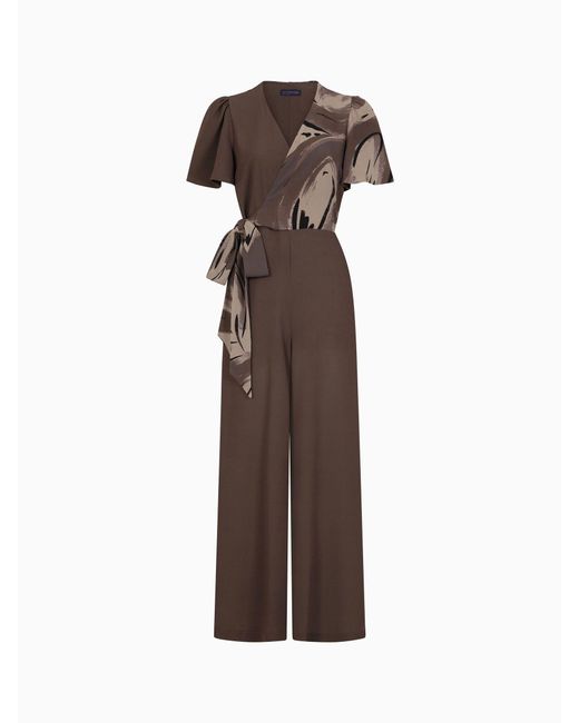 Women's Brown Overwrap Print Jumpsuit