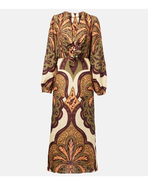 Women's Natural Across Paradise Printed Linen Midi Dress
