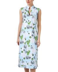 Go to Rue La LaColor/pattern: whimsical cheetah iris Approximately 40.5in from shoulder to hem Design details: V Neckline, Sleeveless, Front Pockets, Adjustable Drawstring at Waist 80% Nylon, 20% Spandex Machine wash only, Do not bleach, Cool iron
