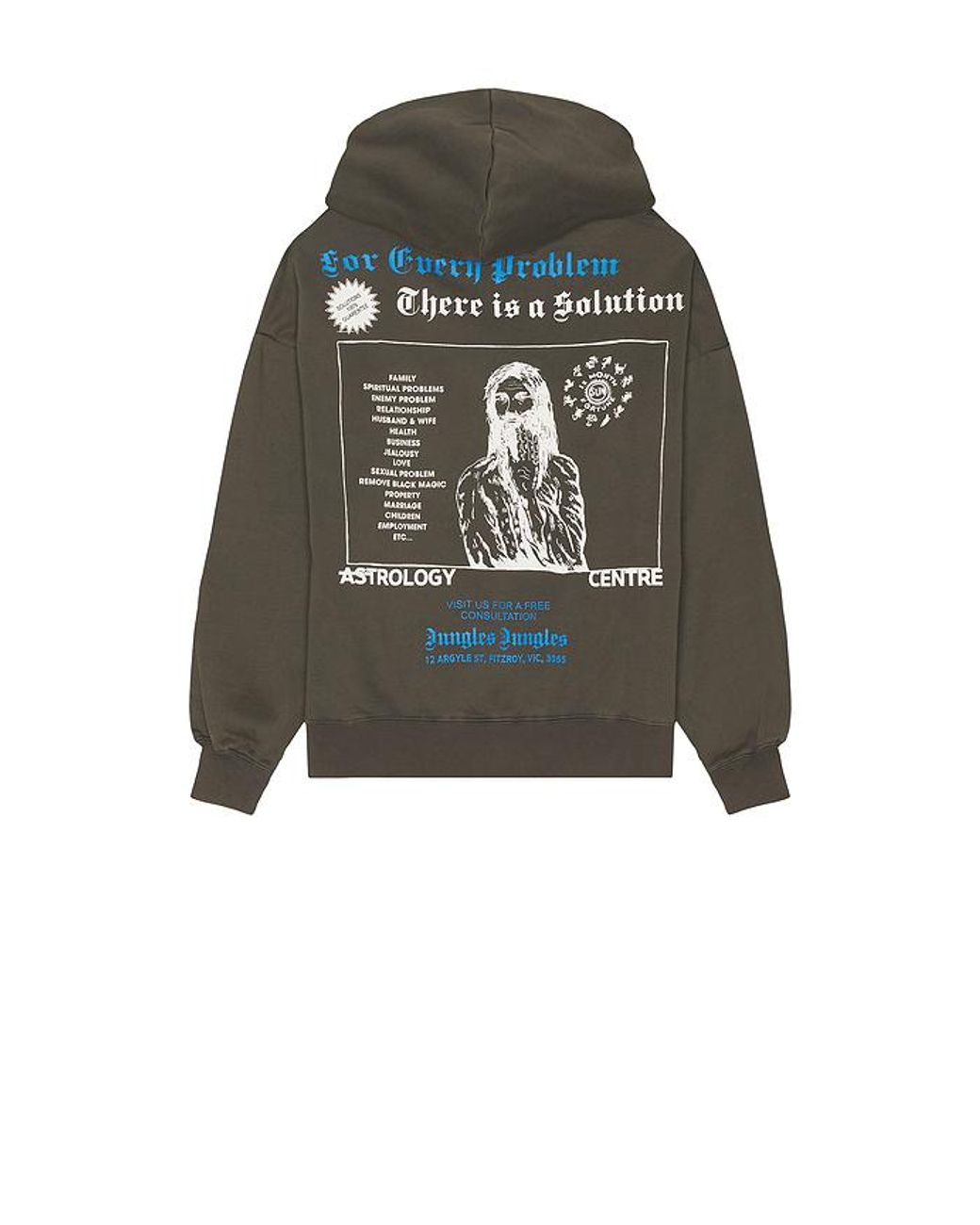 Jungles Solutions Hoodie in Grey. Size L. Also in S, M, XL/1X. Jungles Solutions Hoodie in Grey. Size S, M, XL/1X. 80% cotton 20% polyester. Made in China. Wash cold. Boxy oversized fit. Heavyweight cotton blend. Kangaroo pocket. Front and back graphic. JLER-MK35. H-SOL-VTG-GREY.