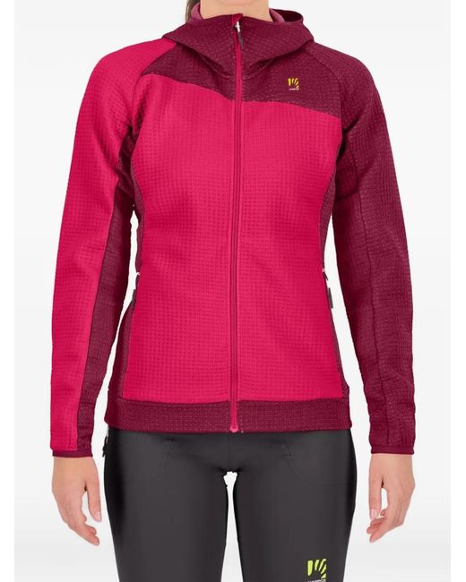 Pink waffle texture zip closure hooded logo detail Size: S. Gender: Female. Material:Polyester. Colour: red
