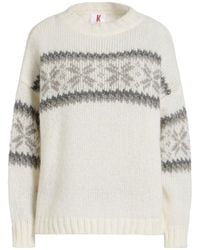 Go to YOOXKnitted, lightweight knit, no appliqués, solid colour, crewneck, long sleeves, side splits, hand wash or dry clean, do not bleach, do not tumble dry. 88% Viscose, 12% Polyester. Colour: blue