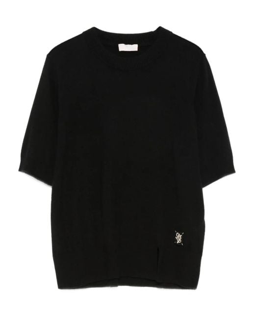 Women's Black Logo-Patch Short-Sleeve Jumper