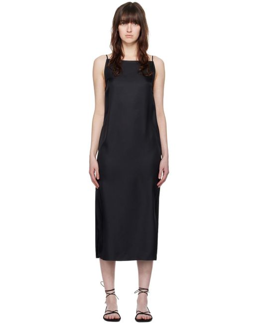 Silk satin twill dress. · Square neck · Darts at chest · Concealed zip closure at side seam · Vented side seams · Fixed spaghetti straps Supplier color: Black Colour: black