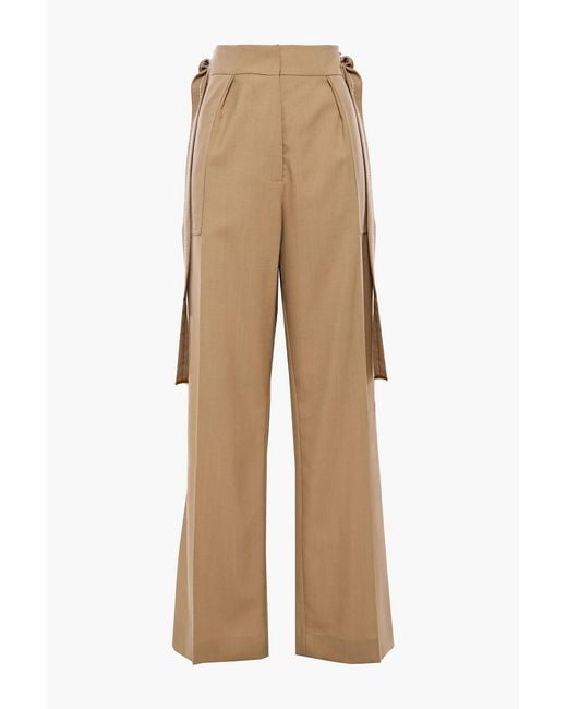 Women's Natural Buckled Wool Wide-Leg Trousers