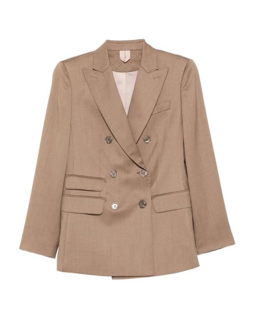 Brown double breasted flap pockets button fastening long sleeves buttoned cuffs Size: 38. Gender: Female. Material:Virgin Wool/Cupro/Elastane. Colour: natural