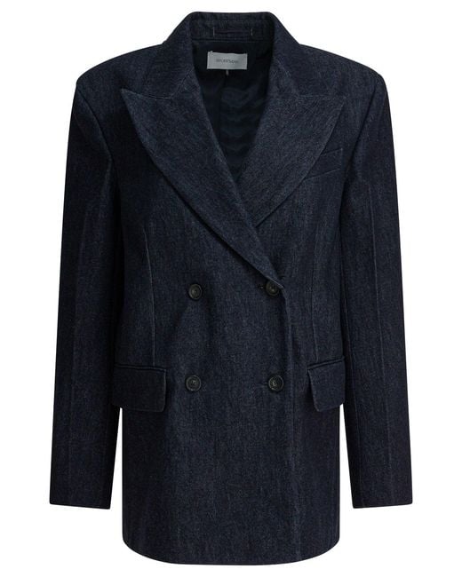 Women's Blue Oversized Double-Breasted Blazer Jackets And Coats