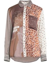 Go to YOOXME369. shirt, satin, denim, multicolour, embellished, lapel collar, short sleeves, button fastenings, one chest pocket, hand wash, do not bleach, do not tumble dry. 52% Viscose, 48% Rayon, Lyocell. Colour: white