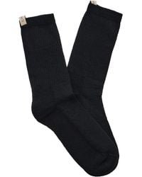 Go to La GarçonneMinä Perhonen light grey tall socks with abstract butterfly motifs in rayon silk blend. Features reinforced toe, heel, and top. Sizing: European (22/24). 76% Rayon, 20% Nylon, 4% Silk. Made in Japan. Colour: white