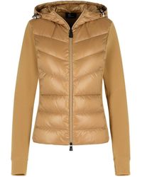 Go to BaltiniFront panel with goose down blend padding, hood with drawstring, zipper closure, logo patch on the sleeve, thumb cuffs, straight hem. Gender: Women. Material: 93% POLYESTER, 7% ELASTANE. Color: Beige. Made in: Imported.