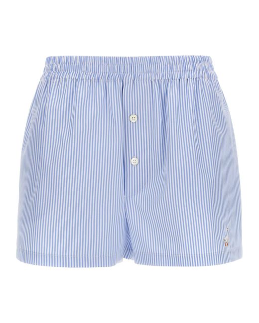 Women's Blue Striped Cotton Poplin Boxer Shorts
