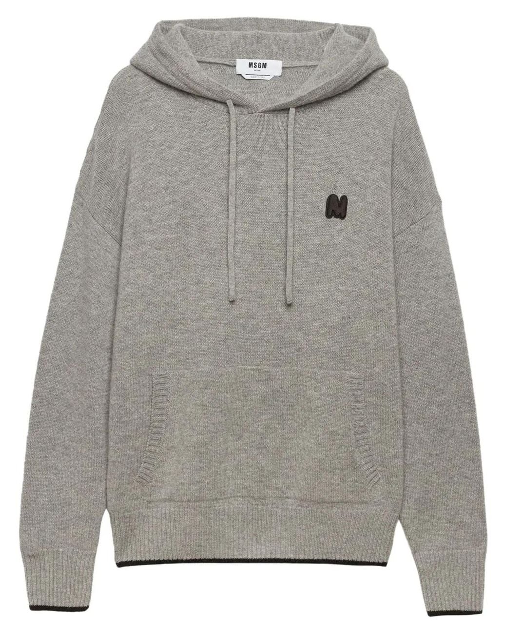 Light grey logo patch at the chest drawstring hood front pouch pocket drop shoulder long sleeves ribbed cuffs and hem Size: S. Gender: Male. Material:Wool/Cashmere. Colour: grey