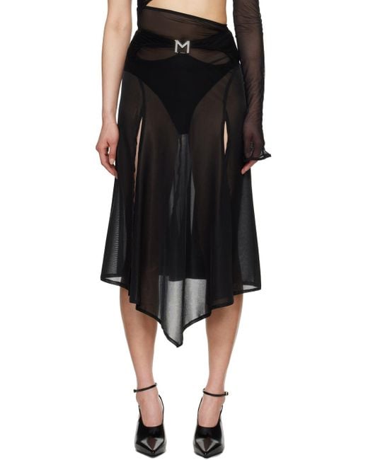 Semi-sheer stretch nylon jersey skirt. · Logo hardware and cutouts at front · Twin vents at handkerchief hem · Zip closure at back Supplier color: Black Colour: black
