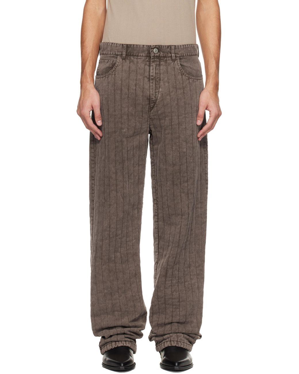Insulated quilted cotton twill trousers. · Fading throughout · Belt loops · Five-pocket styling · Zip fly · Logo patch at back waistband · Full satin lining Supplier color: Acid brown Colour: brown