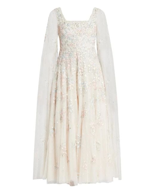 Dappled Sequin Cape V-Neck Maxi Dress - White
