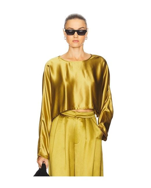 Nonchalant Label Emmy Clean Hem Crop Top in Yellow. Size S. Also in XS. Nonchalant Label Emmy Clean Hem Crop Top in Yellow. Size XS. 77% triacetate 23% polyester. Dry clean recommended. Pull-on styling. Cropped fit. Midweight satin fabric. Item not sold as a set. NOCH-WS159. 23HOC04. After working in retail for twenty years, fashion buyer Cheryl Herger partnered with retail expert Christopher Frye to build the contemporary ready to wear brand Nonchalant Label, created to embody the balance of confidence, effortlessness, and quiet allure, with dressing up as its natural forte. Since its emergence in 2018, Nonchalant Label has remained devoted to elevated minimalism and a refined, understated sensuality. Each season transcending piece is designed to move seamlessly from day to evening and endure well beyond the moment. Nonchalant Label speaks to the cool and assured woman who desires luxurious essentials, timeless silhouettes, and romantic lines without compromising style or allure.