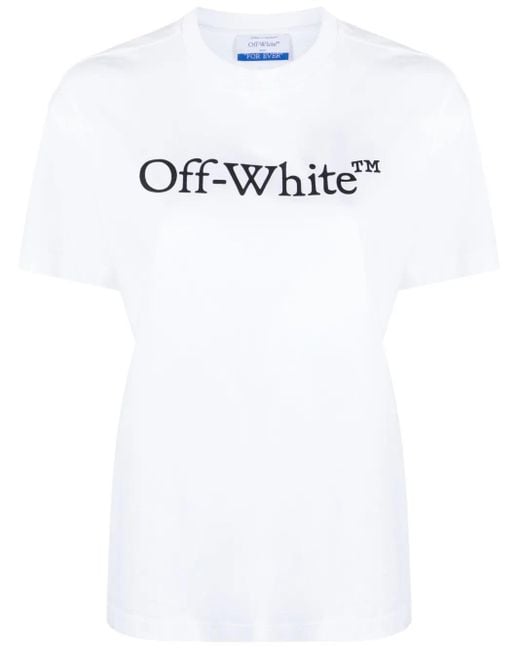 Women's White Bookish Big Logo-Print Cotton T-Shirt