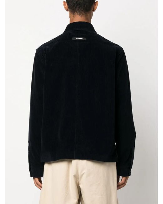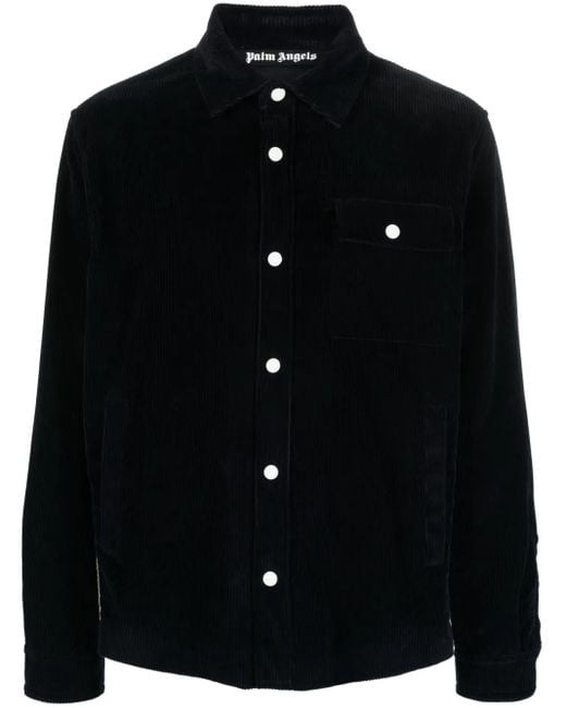 Black cotton corduroy classic collar long sleeves chest patch pocket crochet stripes straight hem Size: 48. Gender: Male. Material:Cotton/Cupro. Colour: black