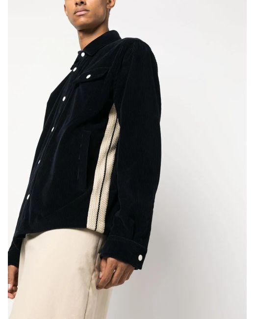 Men's Black Crochet-Stripe Corduroy Shirt Jacket