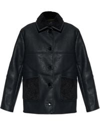 Go to BaltiniSmooth leather jacket with classic collar. Front button closure. Equipped with patch pockets.. Crafted by the renowned brand Paul Smith, this black leather jacket features an elegant yet practical silhouette. It showcases a