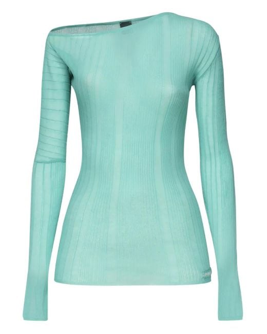 Long-Sleeved Asymmetrical Neckline Jumper - Blue