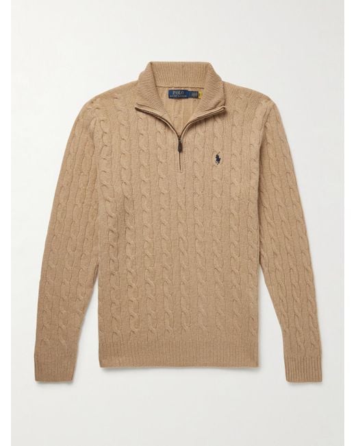 Men's Natural Logo-Embroidered Cable-Knit Wool And Cashmere-Blend Half-Zip Jumper