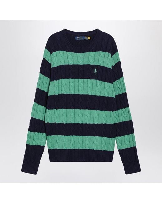 Men's Green Striped Cable Knit Jumper