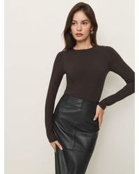 Go to ReformationSoft and stretchy. Shop the Emma Knit Bodysuit from Reformation, a long-sleeved knit bodysuit with a high crew neckline. Reformation Emma Knit Bodysuit Black Small Colour: black