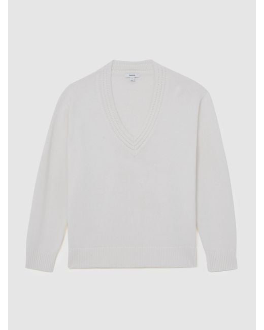 Women's White Cherish - Ivory Cotton And Wool V-neck Jumper, Xs (us 2)