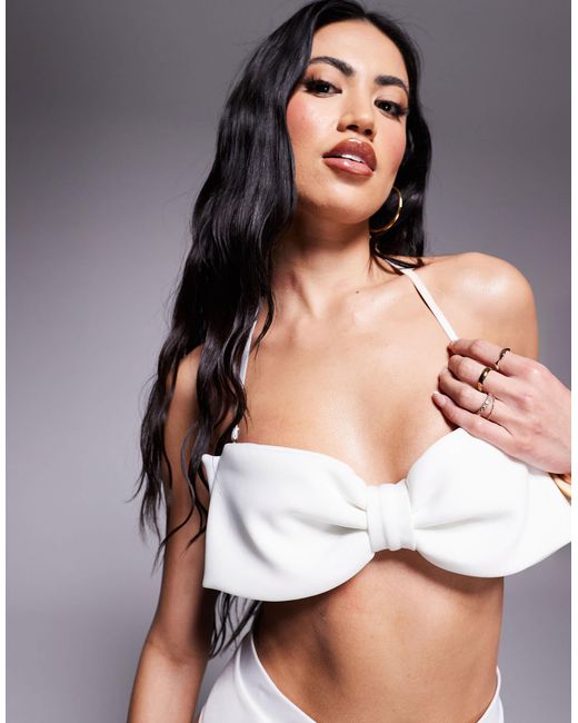 Women's Brown Bandeau Bikini Top With Bow Detail