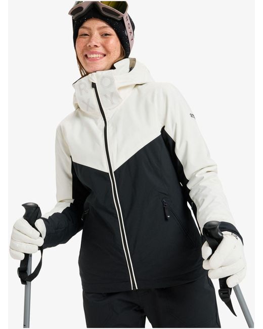 Technical Snow Jacket for Women.Features include:Technology: 10K ROXY DryFlight waterproofing [10,000mm / 5000g] for better waterproofing and breathability.Warmth: ROXY WarmFlight X2 Low bulk, lightweight, breathable insulation.Insulation: [Fill weight: 120g body, 100g sleeves, 60g hood].Fit: Slim, form-fitting in the shortest length for a flattering feminine look.PFAS-free water repellent coatingShell Fabric: Pure polyester.Seams: Seam taping on critical zones.Lining: Lightweight taffeta mapped Colour: white