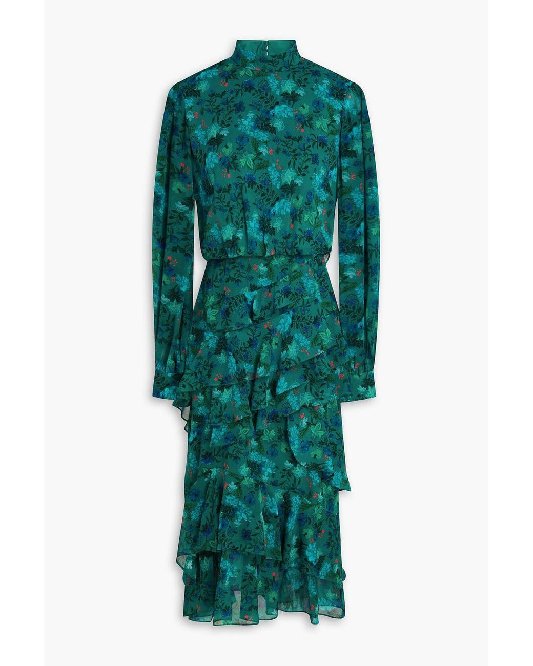 Women's Green Isa Ruffled Floral-Print Silk-Georgette Midi Dress