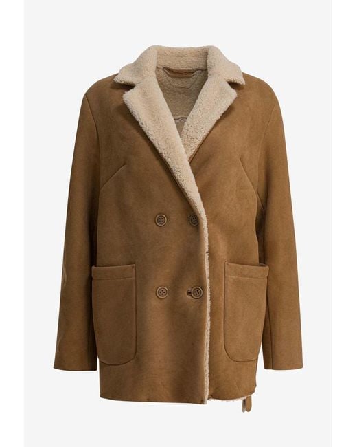 Women's Brown Double-Breasted Shearling Suede Jacket