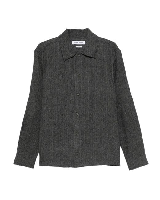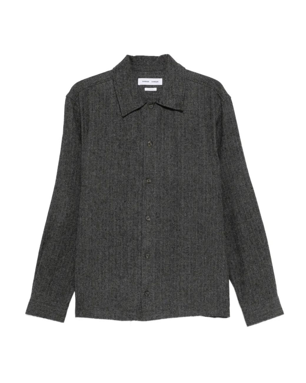 Men's Grey Herringbone Buttoned Shirt Jacket