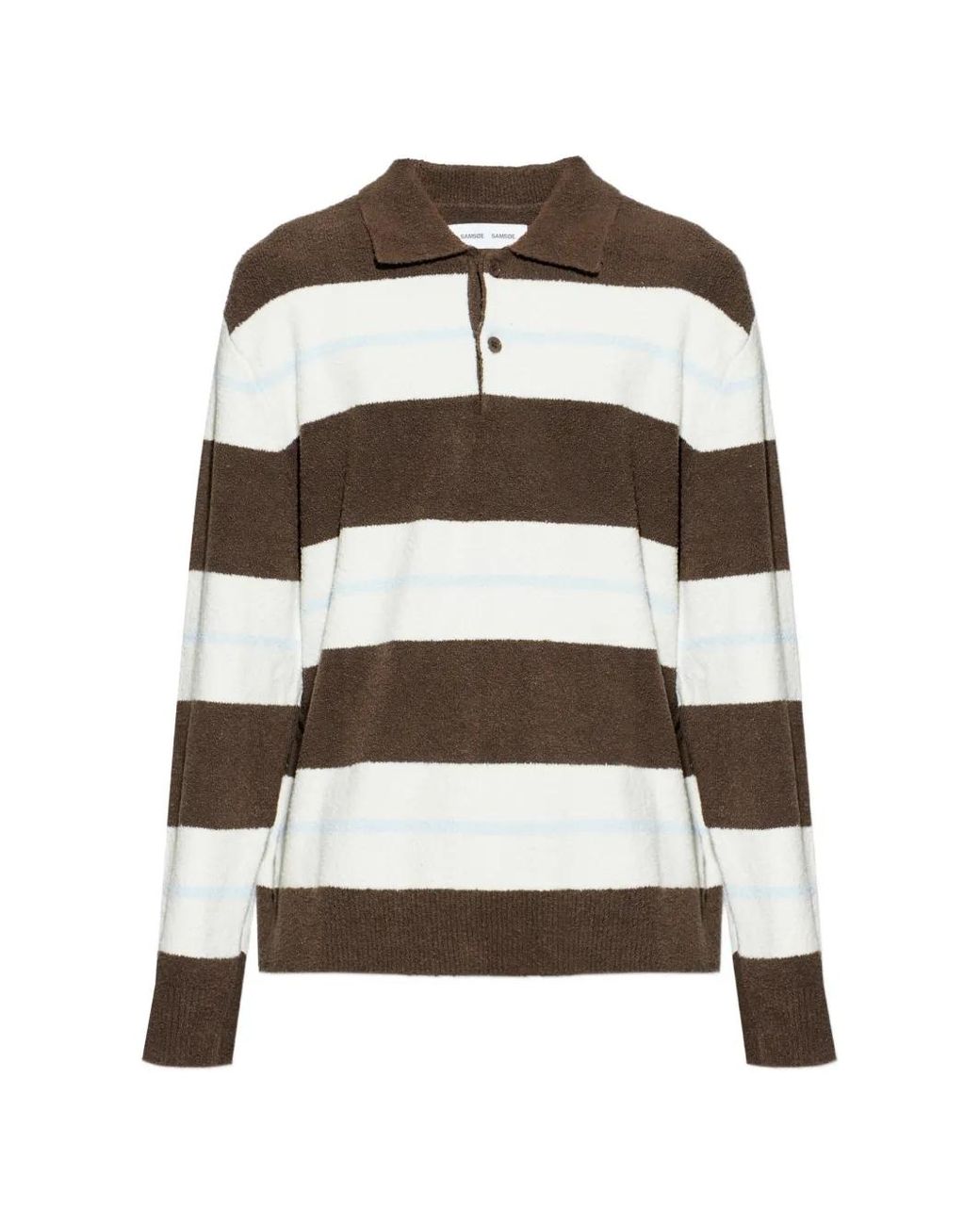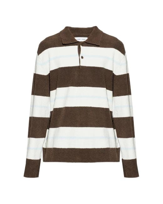 Brown/white striped button closure polo collar long sleeves relaxed fit Size: M. Gender: Male. Material:Cotton/Polyamide/Wool/Elastane.