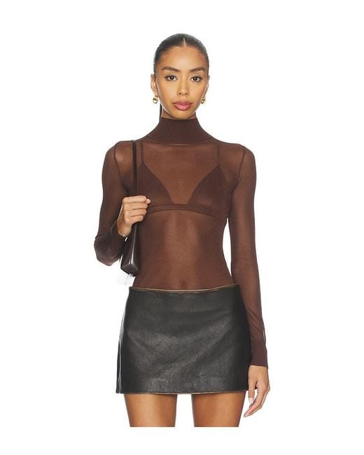 SEROYA Lainey Top in Brown. Size L. Also in M, S, XL, XS, XXS. SEROYA Lainey Top in Brown. Size M, S, XL, XS, XXS. 56% viscose 24% nylon 20% silk. Made in China. Hand wash or dry clean only. Pull-on styling. Turtleneck. Ribbed trims. Garment is made with a semi-sheer fabric, undergarments can show through. SERR-WS226. S-HR25-5227-12. SER.O.YA is a New York-based contemporary brand with a purpose that transcends fashion. Through a collection of unconstrained, gender-optional designs, SER.O.YA aims to be a vessel for positivity: spreading good energy, encouraging connectivity, and catalyzing social movement. Each drop, SER.O.YA partners with a different organization, with a portion of the proceeds being donated to each charitable cause. We say do you, wear you.