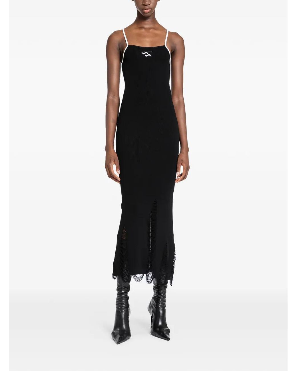 Women's Black Frayed Kanotta Dress