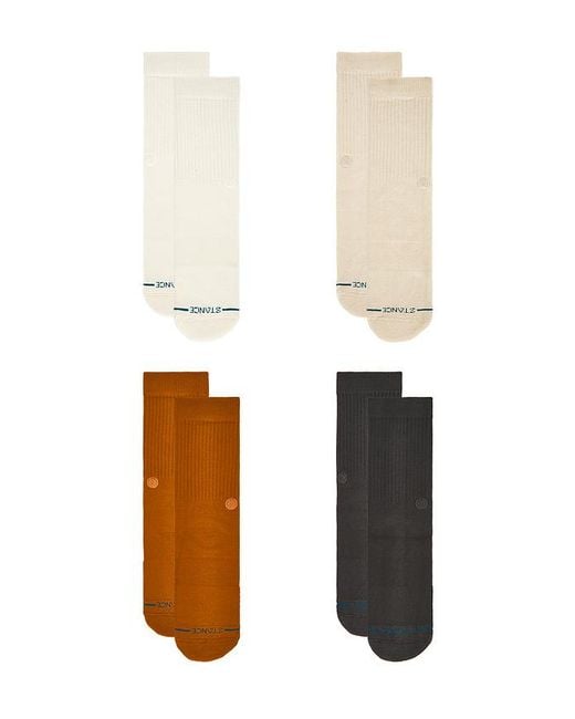 Stance Icon Crew 4 Pack Socks in Black. Size L. Also in M. Stance Icon Crew 4 Pack Socks in Black. Size M. 79% cotton 16% polyester 3% nylon 2% elastane. Machine wash. STAN-MA90. A556C24ICP. STANCE is dedicated to the spirit of individuality with a design philosophy that believes in expression and function. Expression that creates an emotional visual connection and function that also provides comfort and performance. Building outstanding socks with the best fit and performance characteristics from the highest quality materials is the unspoken priority. The outward facing personality of the brand and our products are the creative and artistic stories that go into every single sock we make.