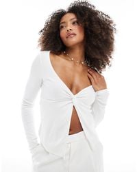 Stradivarius Women's White Ruffle Tie Front Long Sleeve Top