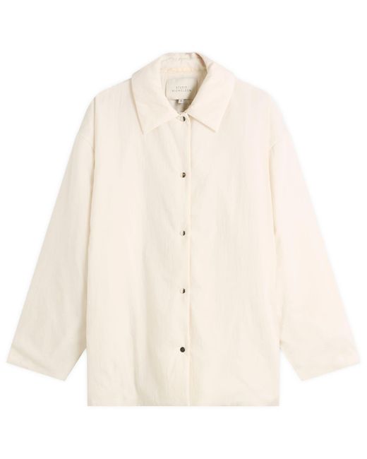 Dressing for work or play, this Studio Nicholson shirt is lined with padding for optimal warmth. Made with a durable nylon blend, a boxy, oversized fit sees the realism of smart casual and streetwear collide. 62% Polyamide 36% Cotton 2% Elastane, 95% Polyester 5% Elastane, Classic Collar, Button Closure, Patch Pockets, Style Code: TOGGSN-748-PAR, Shop All Women’s Studio Nicholson Shirts, Shop All Women’s Shirts. Studio Nicholson Women's Togg Padded Overshirt in Parchment, Size Large | END. Clothing