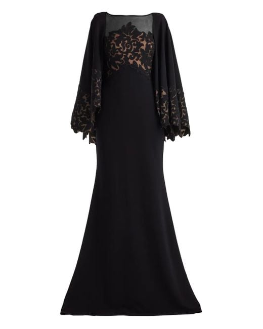 Black lace detail cape sleeves round neck Size: 4. Gender: Female. Material:Polyester/Spandex/Elastane. Colour: black