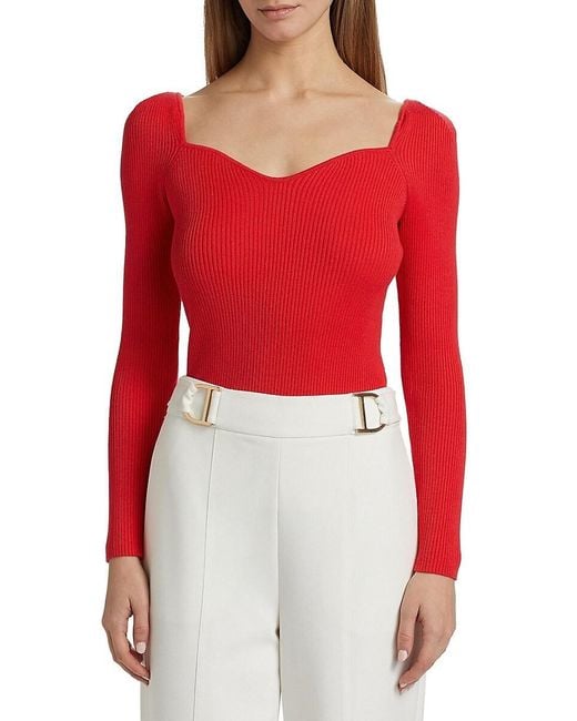 The Sydney Ribbed Long-Sleeve Sweetheart Top - Red