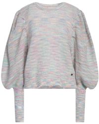 Go to YOOXKnitted, lightweight knit, plain colour, embroidered logo, crewneck, long sleeves, side slit hemline, machine wash or dry clean, do not bleach, do not tumble dry. 44% Cotton, 34% Linen, 22% Polyester. Colour: pink