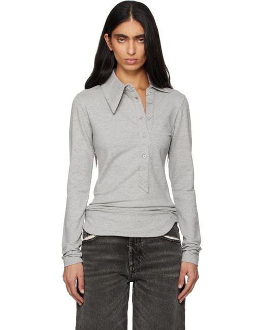 Stretch cotton fleece polo. · Asymmetrical spread collar · Offset five-button placket · Curved hem · Logo embroidered at back collar Supplier color: Melange grey Colour: black