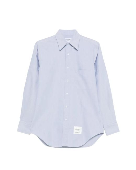 Blue button-down collar chest patch pocket curved hem buttoned cuffs long sleeves Size: 0. Gender: Male. Material:Cotton.