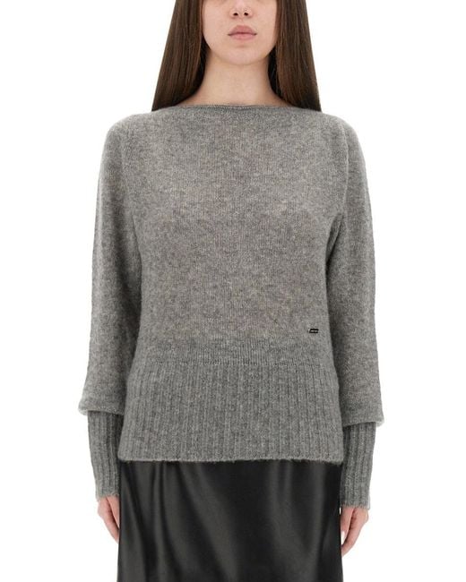 Women's Grey Boat-Neck Jumper