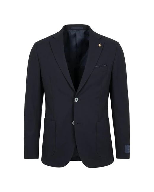 Blue notched lapel two front pockets single-breasted two-button fastening chest welt pocket Size: 46. Gender: Male. Material:Fabric. Colour: blue