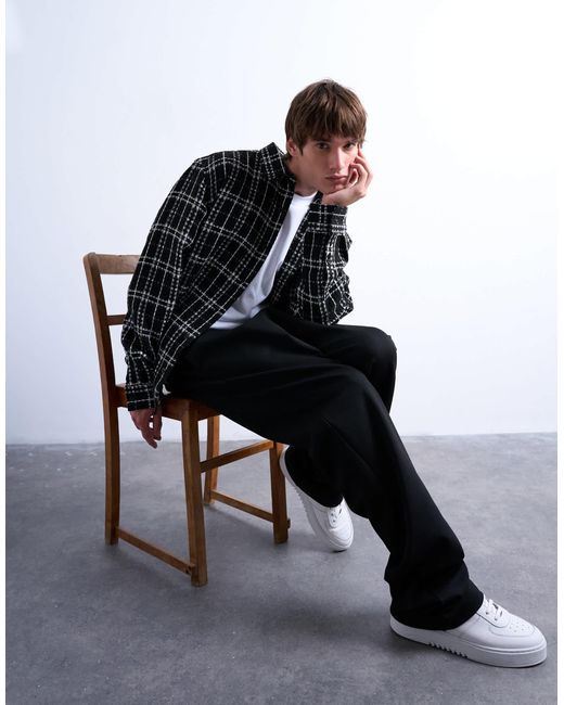 Shirts by Topman This shirt is crafted from a woven fabric in a check design. Featuring a spread collar and button placket, this piece is cut to a regular fit. Polyester. Colour: black