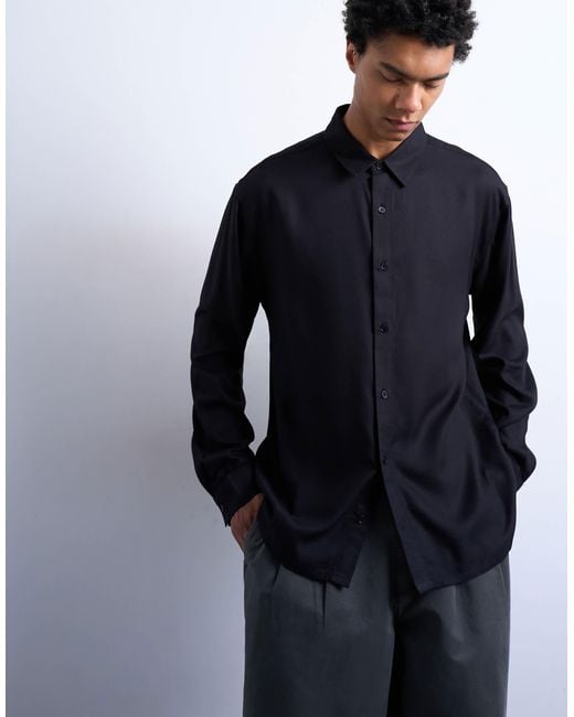 Shirts by Topman This shirt is crafted from a semi-structured twill fabric and features a versatile plain design. It has a spread collar, button placket, long sleeves and a relaxed fit. Colour: blue
